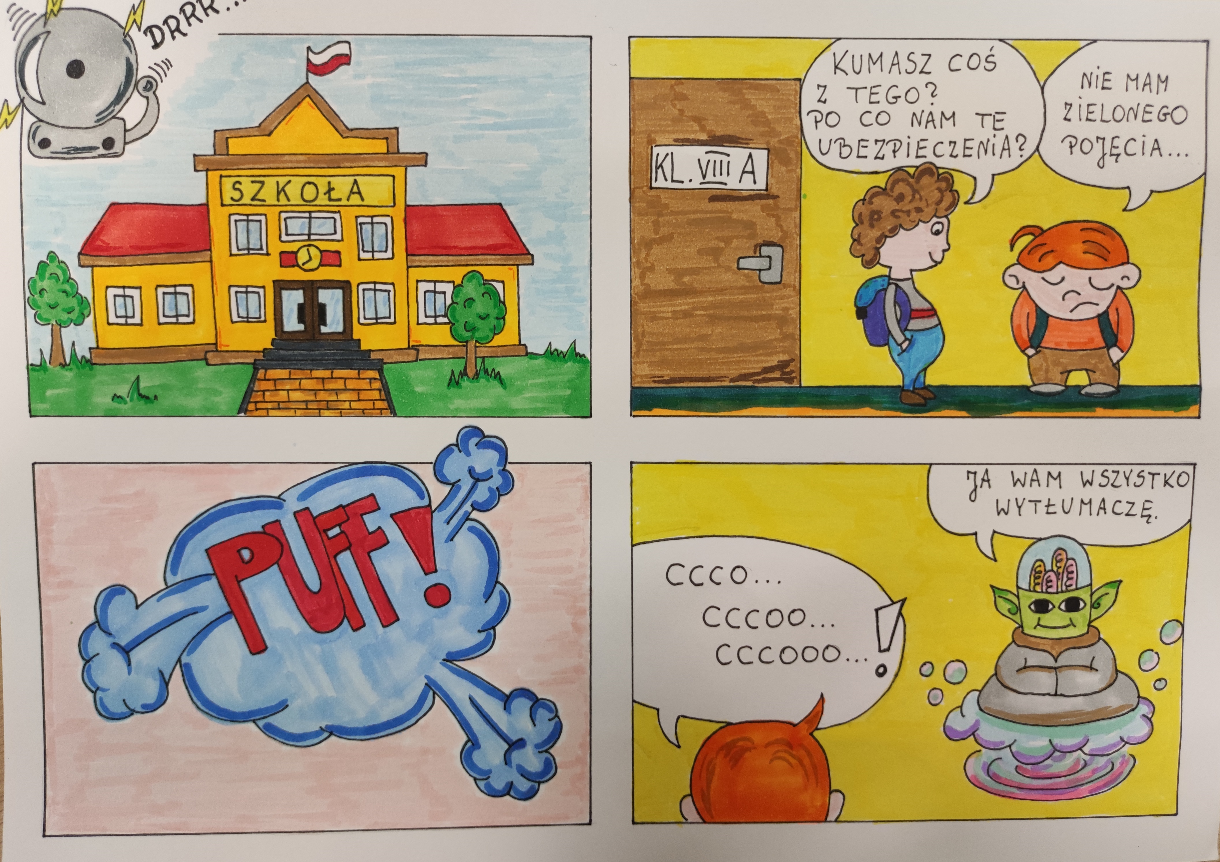 Zadanie konkursowe polegało na wykonaniu plakatu lub komiksu lub nagraniu filmu, który wyjaśnia, jak istotną rolę odgrywają ubezpieczenia społeczne. Po lekcji o ubezpieczeniach młodzi plastycy i filmowcy zmierzyli się z tym tematem samodzielnie, w parach lub małych grupach.